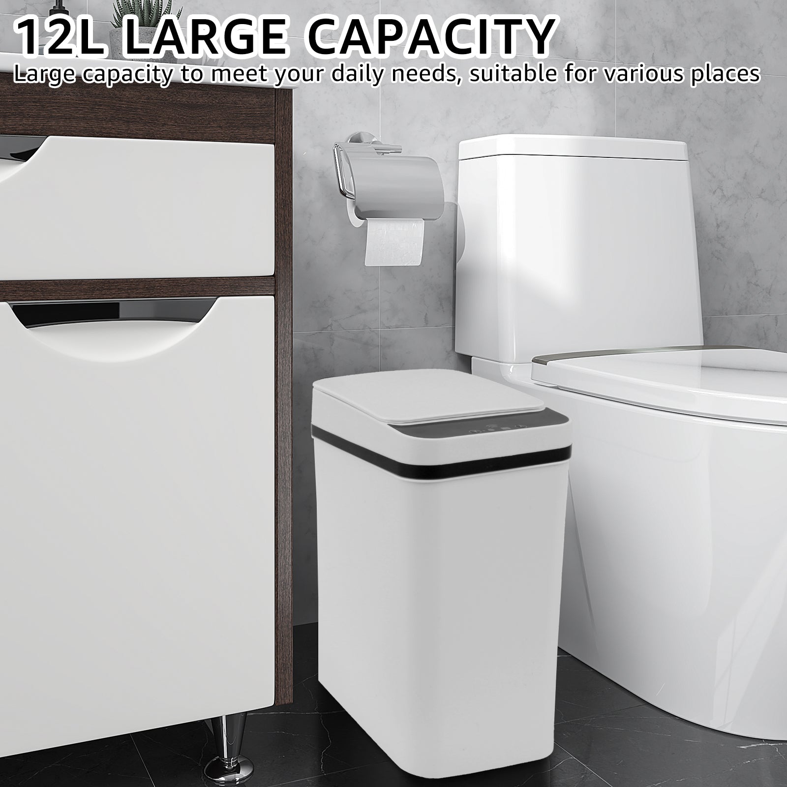 Compact yet efficient, the 12L capacity makes it ideal for kitchens, bathrooms, offices, and other living spaces. The waterproof design ensures durability, while the sleek, minimalist aesthetic blends seamlessly with any interior style.